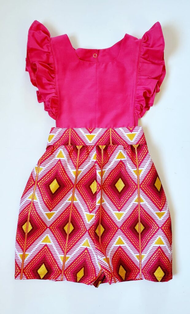 Une collection de vêtements pour bébé et enfant inspirée du wax et du madras, confectionnée à la main en Guadeloupe, en petites séries.