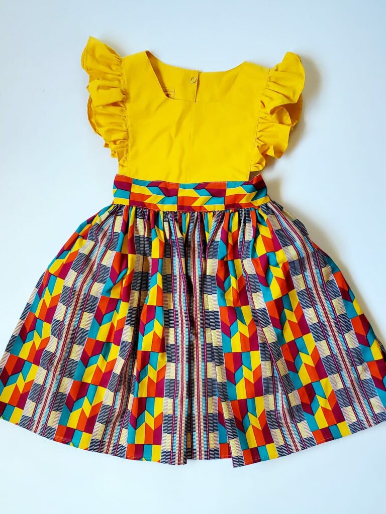 Elle associe un tissu uni lumineux à de jolis détails en wax, signature Mély & Terry.